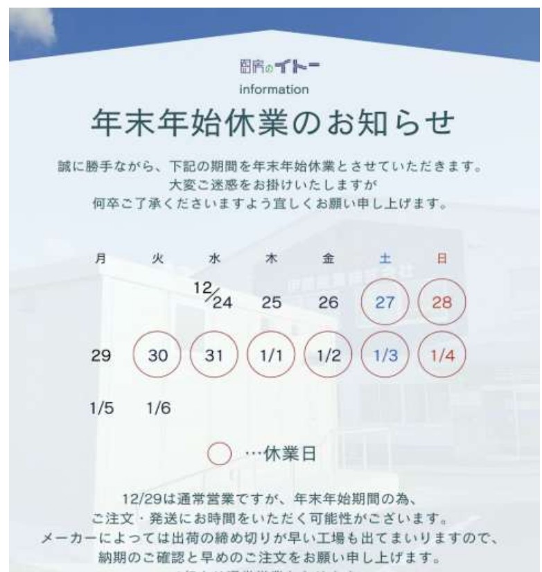 【年末年始休業のお知らせ】